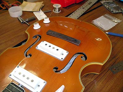 I had put together with all new hardware and electronics. We figured finding an original bridge for this particular bass wouldn't be very