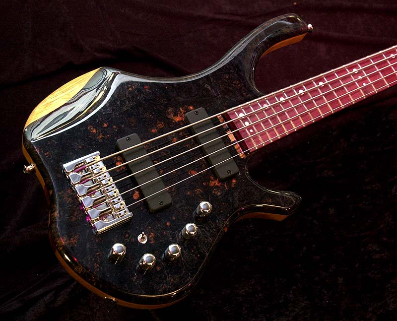 • Stabilized Flame Purpleheart fingerboard, 34" scale, fretted